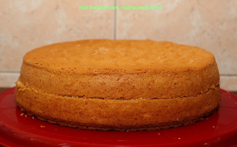 Zaczynamy od przekrojenia biszkoptu na pół.