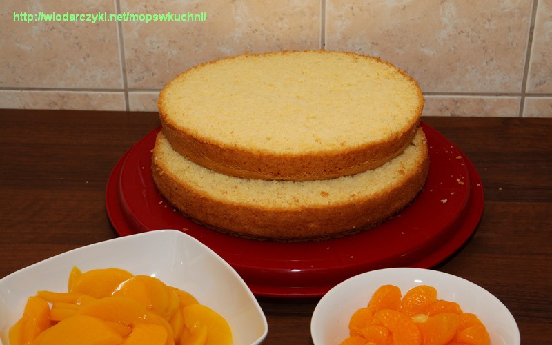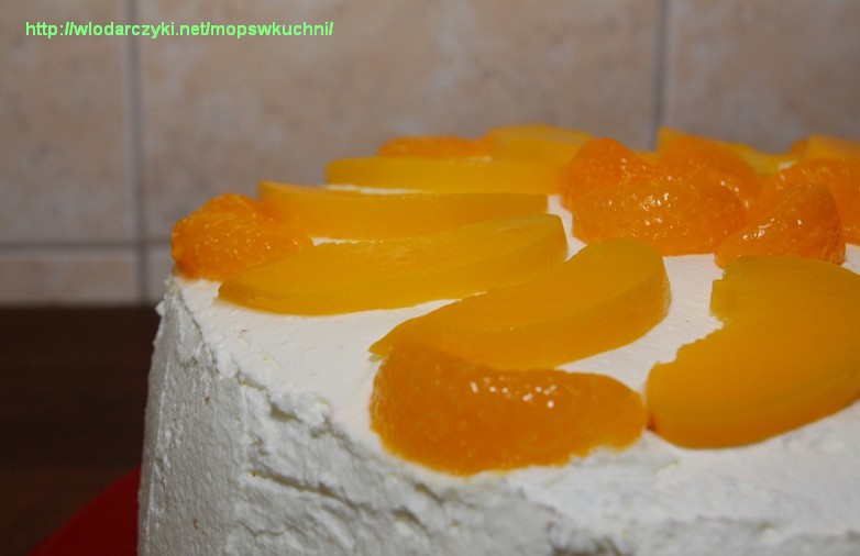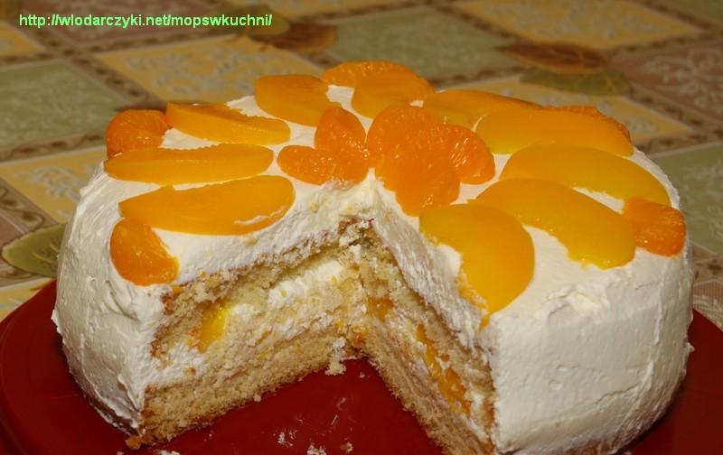 Tags: biszkopt, brzoskwinie, mandarynki, śmietana, tort