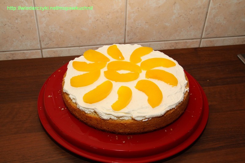 Dekorujemy tort brzoskwiniami i mandarynkami.