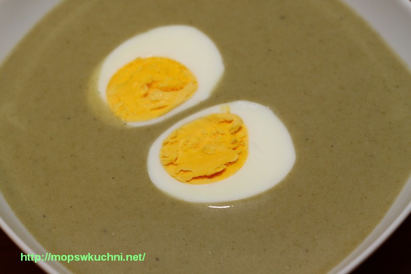 Zupa ta nie ma nic wspólnego ze szczawiową znaną mi z najmłodszych lat ze szkolnej stołówki. Tamta była bez smaku i pływało w niej jajko, które gotowało się chyba z 30 minut, bo żółtko było prawie całe szare w środku… Brrr… Pamiętajcie, że jajka gotuje się maksymalnie 9 minut. Później żółtko na brzegach staje się szare a białko jest już ciężkostrawne.