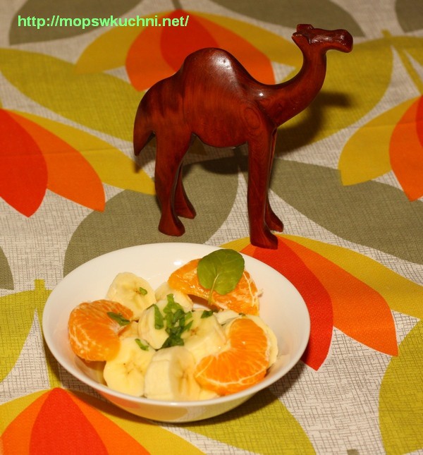 Najpierw zaoferowałam moim gościom banany i mandarynki z marokańskim dressingiem.