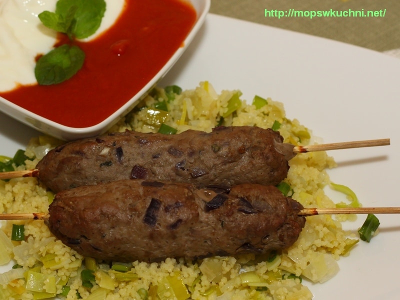 Daniem głównym były marokańskie kofty z pikantnym sosem pomidorowym na kuskusie z warzywami cebulowymi.