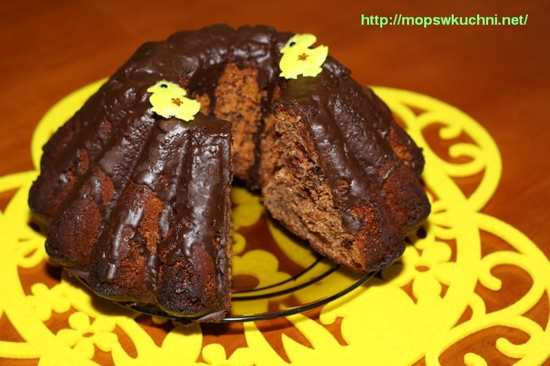 9. Gdy babka ostygnie, oblewamy ją polewą z gorzkiej czekolady.
