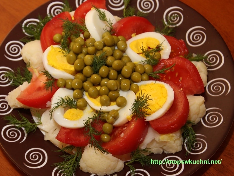 Sałatka z kalafiora z pomidorami i jajkiem