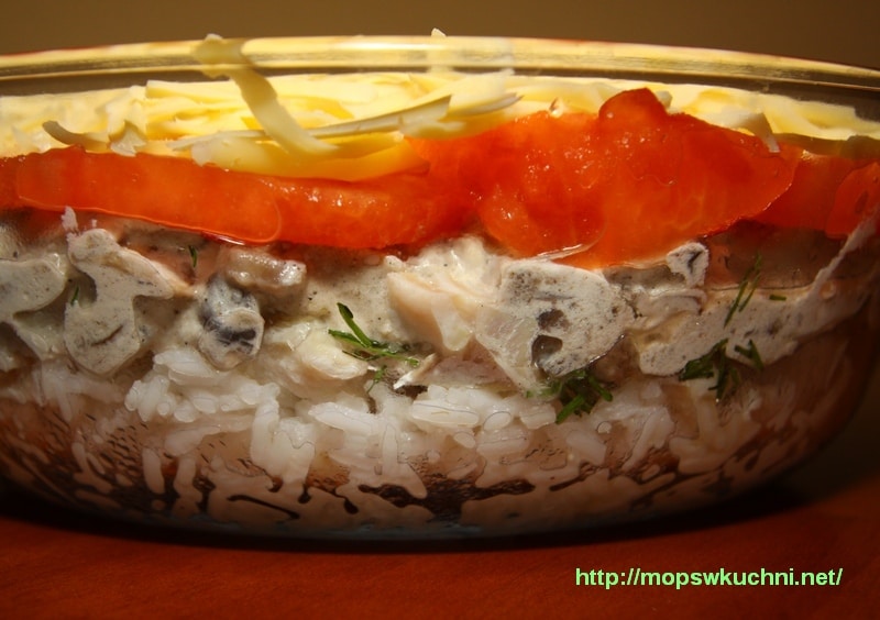 6. Utworzyć następne warstwy z pieczarek, pomidorów i sera.