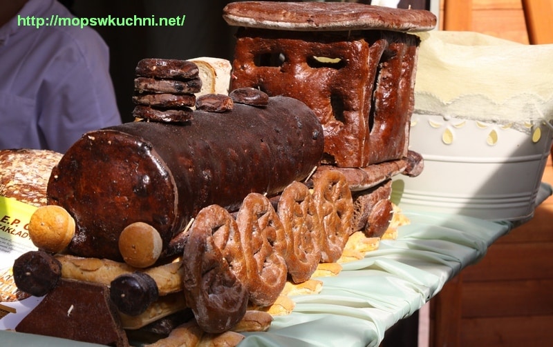 W książce znalazłam przepis na chleb zawsze-się-uda – na zakwasie podany przez jedną z miejscowych gospodyń, jednak kiedyś na porządku dziennym było oddawanie chleba do upieczenia w piekarni, tak samo ciast czy ciasteczek, nie każdy miał piec i tak było też ekonomiczniej. Na ulicy Browarnej znajdowała się piekarnia prywatna, po wojnie upaństwowiona. Tam Nieszawianie oddawali swoje wypieki. “…z wypiekami wiązał się cały rytuał. Najpierw należało wypożyczyć z piekarni i zanieść do domu dwie lub trzy duże blachy. Uzgadniało się z majstrem piekarzem godzinę, na którą należało przynieść słodkości do upieczenia, bo każde ciasto wymagało innej temperatury. Oczywiście ciasteczka pieczono już po wypieku chleba. Zapełnione blachy przykrywało się ściereczką i przynosiło do piekarni. Po upieczeniu przekładałyśmy wypieki do wiklinowego koszyka wyłożonego pergaminem. “, ” W okresie przedświątecznym na podwórku piekarni stały dziesiątki blach, blaszek, foremek z babkami i wąskich korytek, czekających swojej kolejki do wstawienia do pieca. To był niezapomniany widok!”. Tak było w wielu miastach Polski – także w Łodzi jeszcze w czasach młodości mojej teściowej, o czym mi niedawno opowiadała.