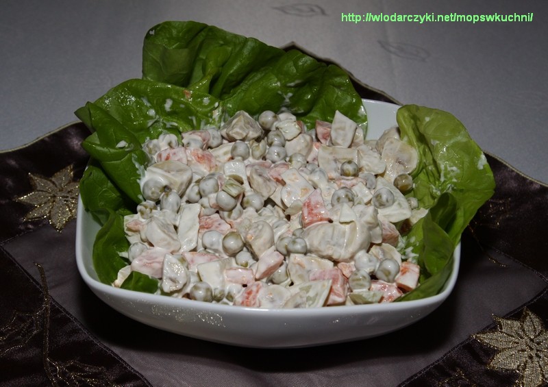 Oprócz tego moja ciocia Halinka zrobiła pyszne mini-kanapeczki z łososiem, a ja zrobiłam sałatkę z marynowanymi pieczarkami (specjalnie dla mojego męża, który uwielbia pieczarki pod każdą postacią).