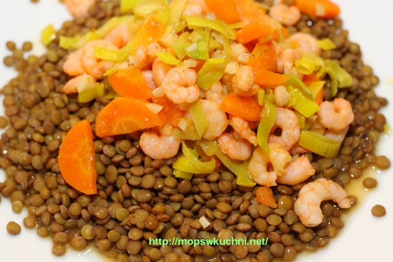 2. Krewetki przelać wrzątkiem i odsączyć na sicie.