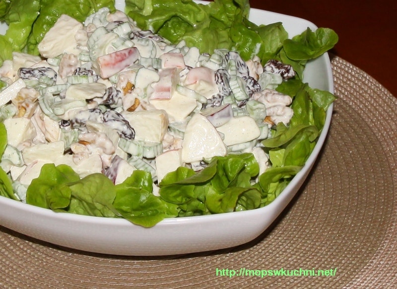 Ponownie zostałam zaproszona do wspólnego gotowania przez Pannę Malwinnę z bloga Filozofia Smaku. Niezmiernie się ucieszyłam, albowiem chciałam zrobić tę sałatkę od bardzo dawna. Autorem sałatki jest Oscar Tschirky – szef kuchni w hotelu Waldorf – Astoria w Nowym Jorku pod koniec XIX w.
