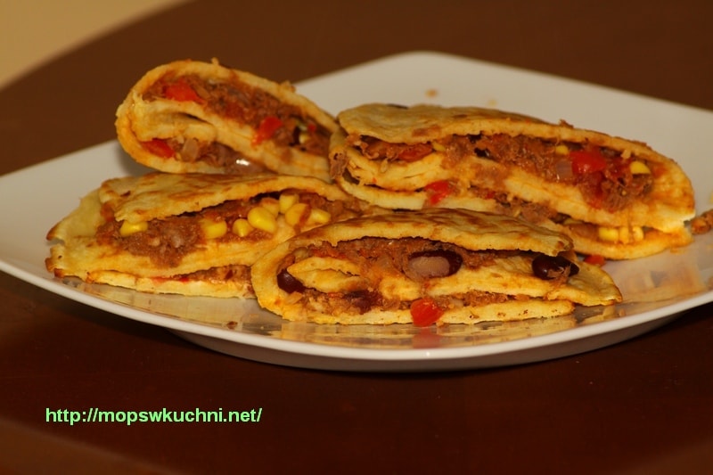 Tym razem postawiłam na ostrzejsze smaki. Naleśniki zawsze robię takie same, zmieniam tylko nadzienia. Przypomniałam sobie, że dawno nie robiłam naleśników z nadzieniem meksykańskim. Ostatnio jak mieszkaliśmy w Warszawie, a już przecież od roku jesteśmy znów w Łodzi. Miałam akurat pyszną wołowinkę z ostatniego rosołu!