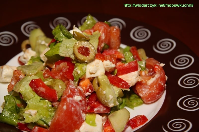 Przygotowujemy także sos. Ja uwielbiam sos czosnkowy. Nie mogło więc go zabraknąć na moje pizzy 🙂 Robi się go bardzo prosto: mieszamy małą śmietanę i jogurt, dodajemy przeciśnięte przez praskę ząbki czosnku, wsypujemy przyprawy i mieszamy. Dobrze jest mieć w domu dzbanuszek na sos. A i mała uwaga – czosnek koniecznie musi być polski. Markety opanowane już zostały totalnie przez jego kuzyna z Chin czy nawet Meksyku, ale mówię Wam, że to już nie to samo… Warto się przejść na ryneczek po polski czosneczek 😉 Wygląda nawet dużo inaczej – jest mniej różowy – sami zobaczycie.