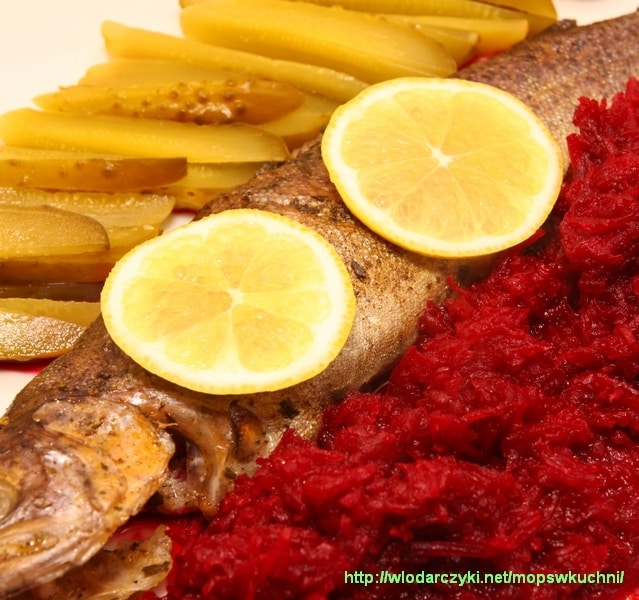 Dwie godziny przed planowanym podaniem potrawy namaczamy śledzie w wodzie z dodatkiem kilku łyżek octu. Po upływie tego czasu odsączamy śledzie, kroimy na mniejsze kawałki i skrapiamy sokiem z cytryny. Gotujemy ziemniaki w mundurkach. Blanszujemy pokrojone w piórka cebule, przelewamy zimną wodą i studzimy. Talerze wykładamy listkami sałaty.