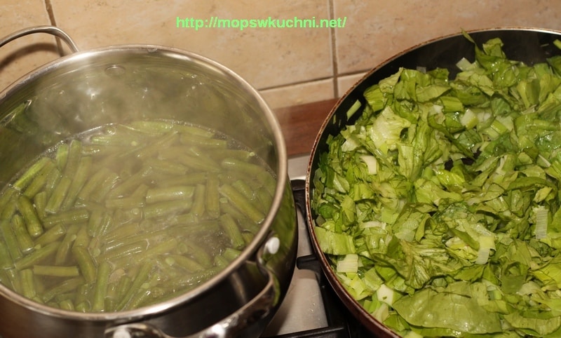 Rodzynki zalewamy ciepłą wodą i odstawiamy na 10 minut. Jajka gotujemy na twardo (8 minut) z dodatkiem łyżeczki soli, co sprawia że łatwiej je obrać. Studzimy w zimnej wodzie, obieramy i kroimy w ósemki.